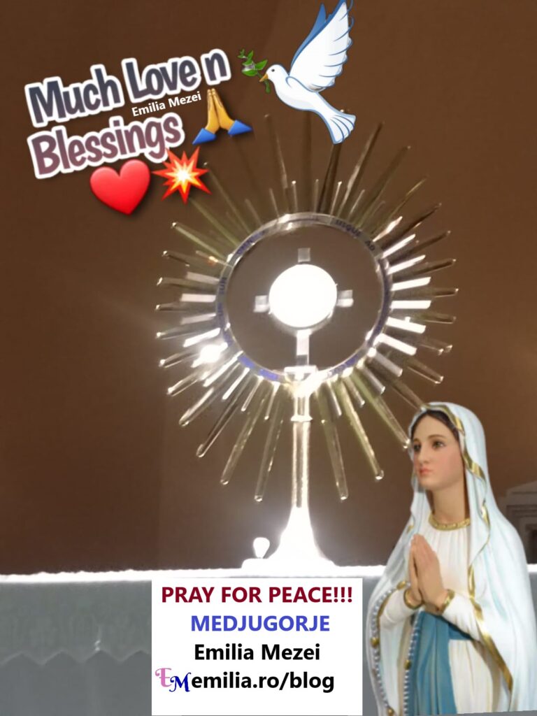 ESTE FOARTE IMPORTANT CA SĂ NE RUGĂM PENTRU PACE și SĂ-I OFERIM IUBITEI NOASTRE MAME CEREȘTI, REGINA PĂCII, REGINA UNIVERSULUI, CARE ESTE ALĂTURI DE NOI CA SĂ NE AJUTE, TOT CE PUTEM…RUGĂCIUNILE NOASTRE, ÎN SPECIAL”SFÂNTUL ROZAR”, SFÂNTA LITUGHIE și SFÂNTA ÎMPĂRTĂȘANIE, JERTFELE, SUFERINȚELE, FAPTELE NOASTRE…PENTRU CĂ ARE MARE NEVOIE DE NOI ÎN SPECIAL ACUMA, CÂND ÎNTREAGA OMENIRE SE AFLĂ ÎN MARE PERICOL…ȘI CEI RĂI VOR CU TOT DINADINSUL SĂ ÎNCEAPĂ RĂZBOIUL…DAR NOI TREBUIE SĂ FIM ÎNCREZĂTORI, SĂ NE RUGĂM ȘI SĂ RESPECTĂM PORUNCILE CEREȘTI, ÎN SPECIAL PORUNCA IUBIRII.