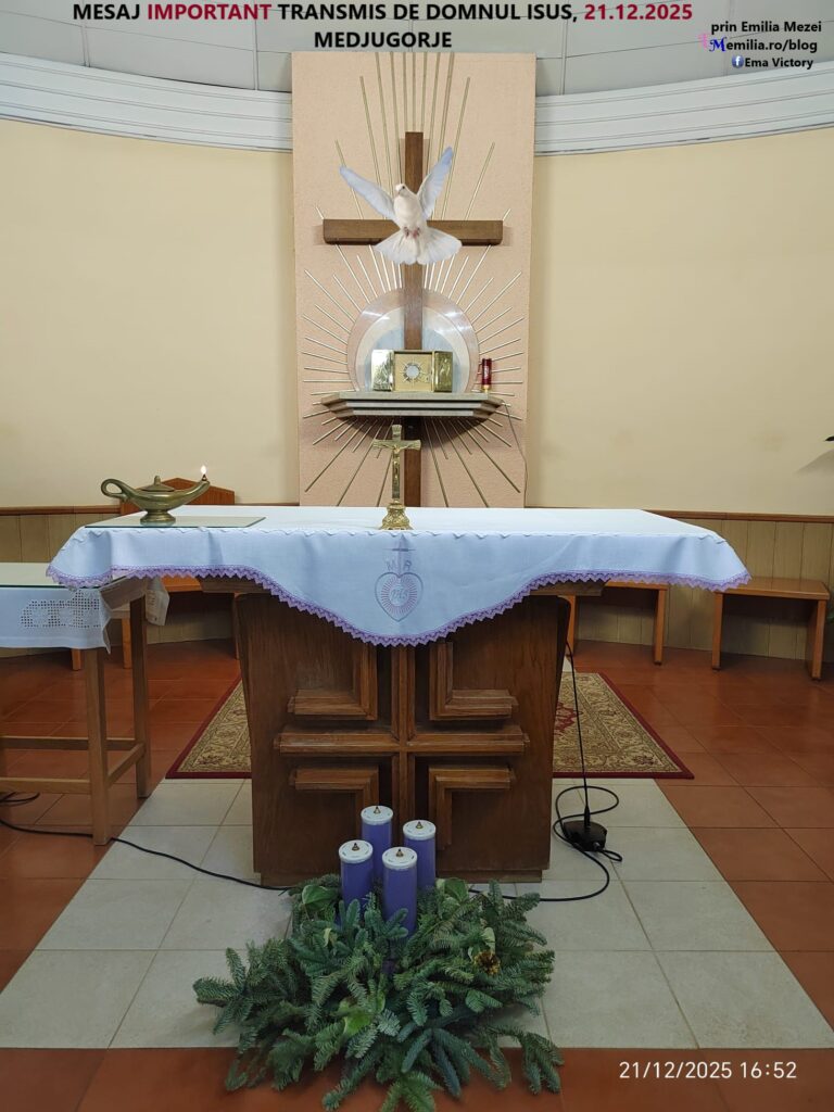 Mesaj Important transmis de Domnul Isus, în ultima duminică de Advent, 21 decembrie 2025, în Capela Adorației Euharistice din Medjugorje, în jurul orei 16:20, după ce am participat la Sfânta Liturghie de la ora 13:00, am rămas în capelă să continui să mă rog și Domnul Isus a transmis că dorește să transmită un Mesaj prin mine: