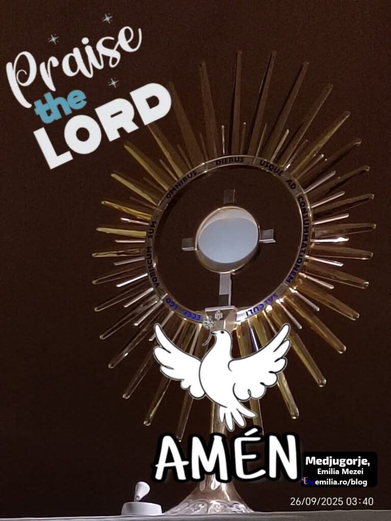Mesaj Foarte Important transmis de Domnul Isus, 26 septembrie 2025, în Biserica Sfântul Iacob din Medjugorje, după Sfânta Liturghie de seară în timpul Adorației Euharistice nocturne, în jurul orei 5 dimineața, Domnul Isus dorește să ne transmită: